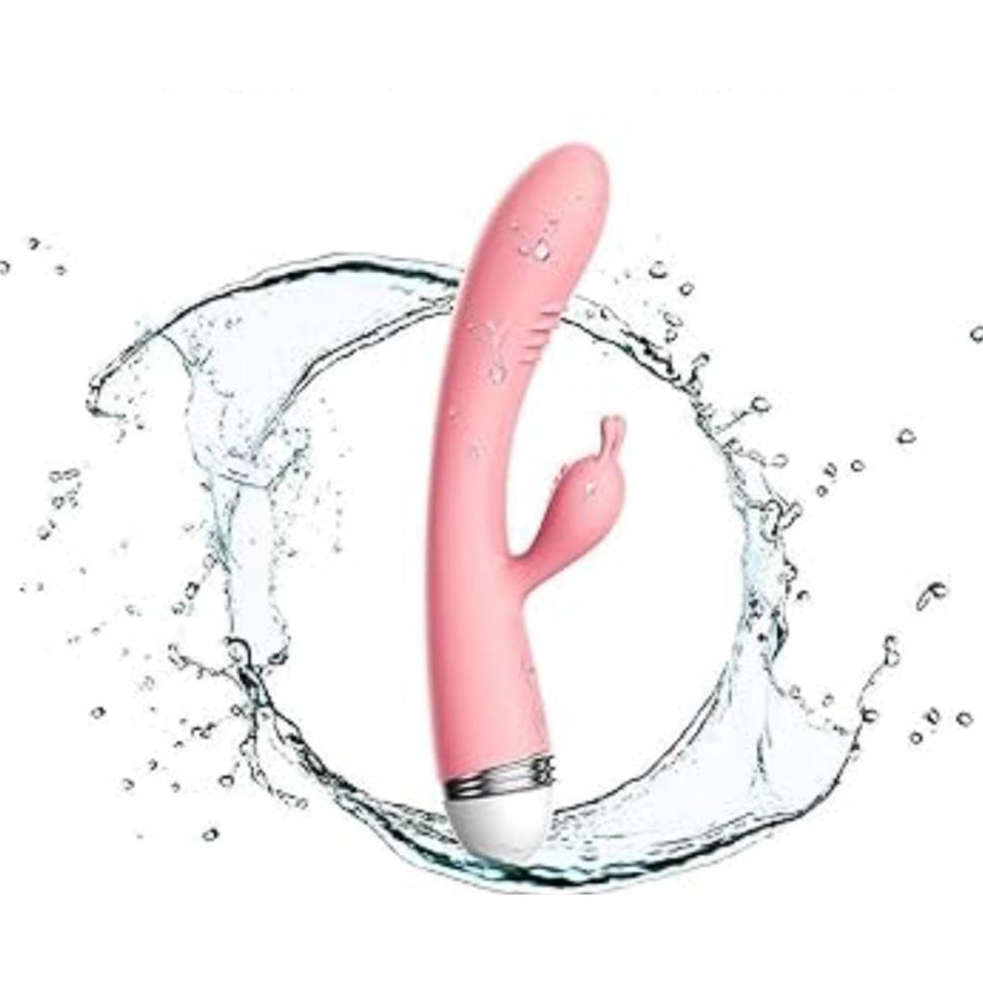 vibrador recargable con estimulador de clitoris, tiene diferentes velocidades de vibracion y tipos de vibracion, el material es silicon de grado medico